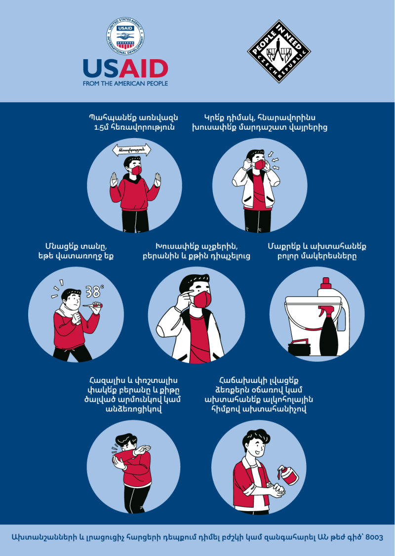 Հայաստանում COVID-19-ի տարածումը նվազեցնելու նպատակով People in Need-ը ԱՄՆ Միջազգային զարգացման գործակալության ֆինանսավորմամբ իրականացնում է հանրային իրազեկում։